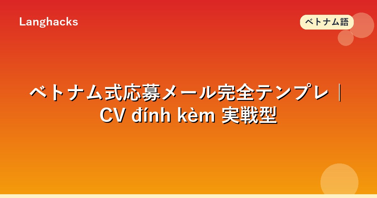 ベトナム式応募メールはCV添付+短いカバーメール本文+ポートフォリオリンクの3点セットが標準です。本文は80-120字が理想で、CVで語ることが重要です。