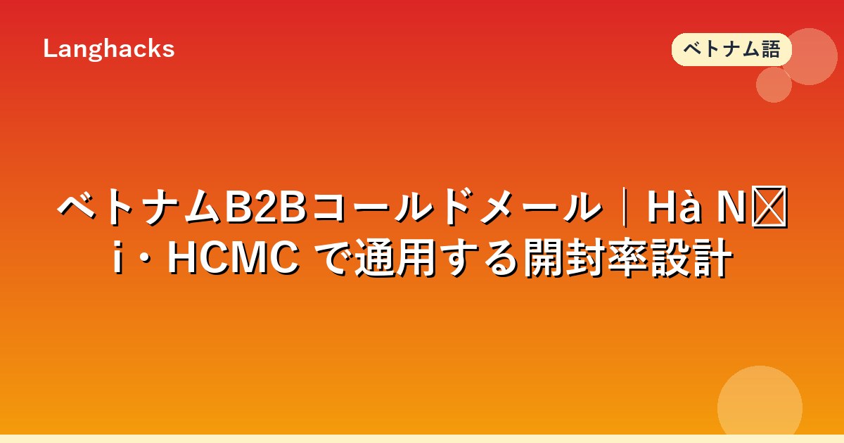 ベトナムB2Bコールドメールは、北部Hà NộiとHCMCで通用する開封率設計が必須です。「簡潔+具体+直接」がベトナム式で、Hà Nộiは格式重視、HCMCはオープン直接で異なります。