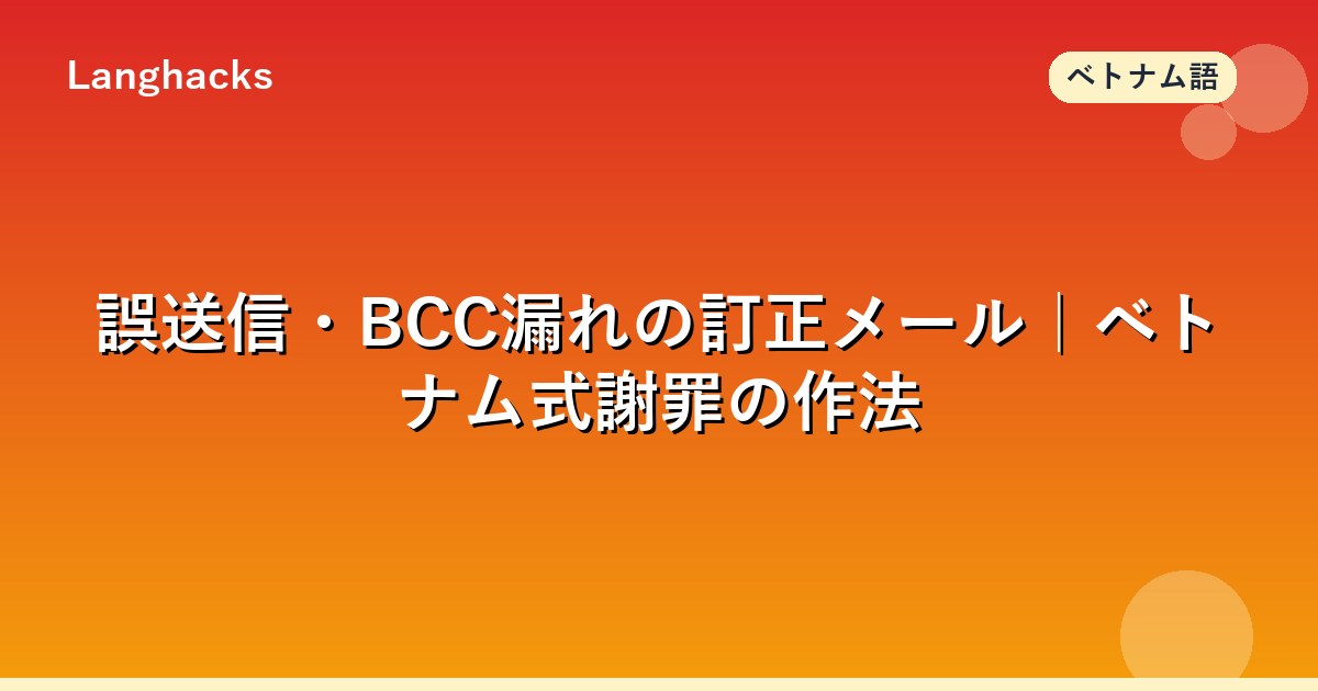 ベトナム語の誤送信・BCC漏れ訂正メール(Email gửi nhầm chỉnh sửa)は、5分以内の即時訂正が原則です。
