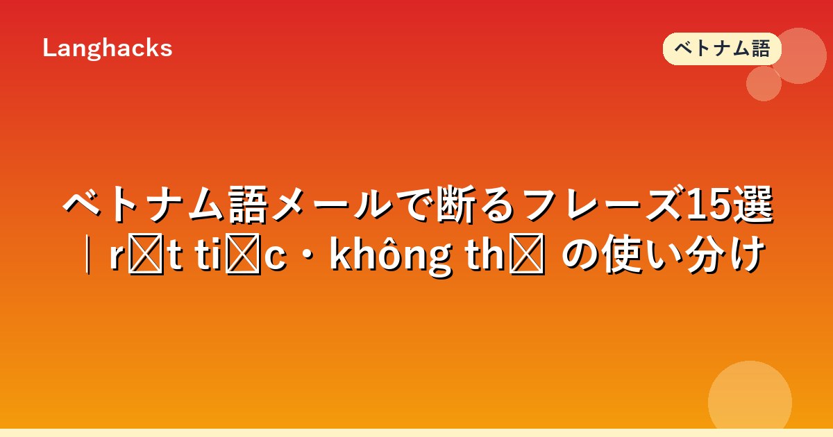 ベトナム語ビジネスメールで断る表現は、関係維持が最重要です。「rất tiếc」「không thể」「khó」の使い分けで、断りの強度を調整します。
