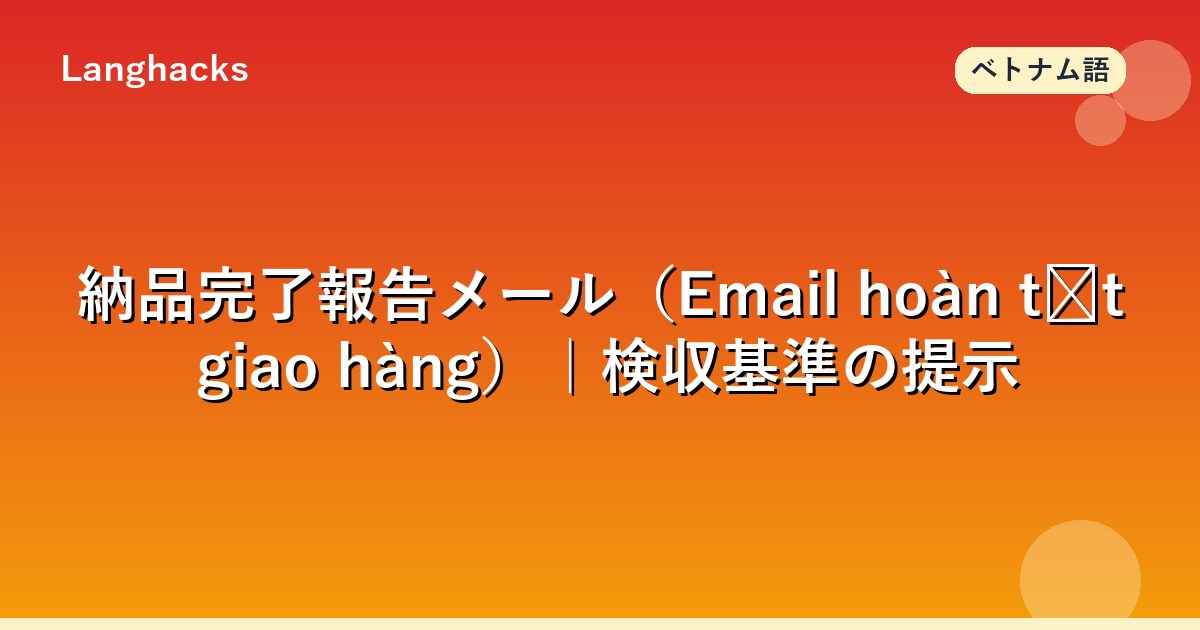ベトナム語の納品完了報告メール(Email hoàn tất giao hàng)は、検収期間と保証期間の明示が必須です。