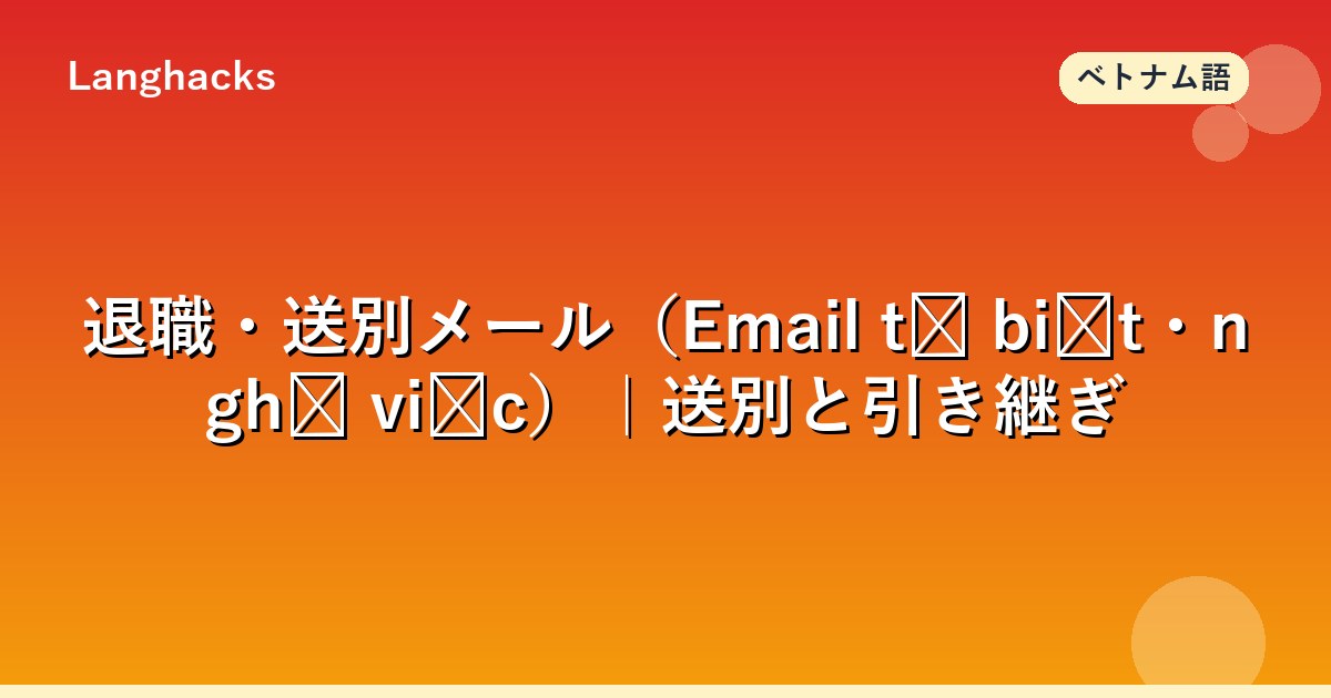ベトナム語の退職・送別メール(Email từ biệt・nghỉ việc)は、労働法(最低30日前通報)と引き継ぎ慣行が鍵です。