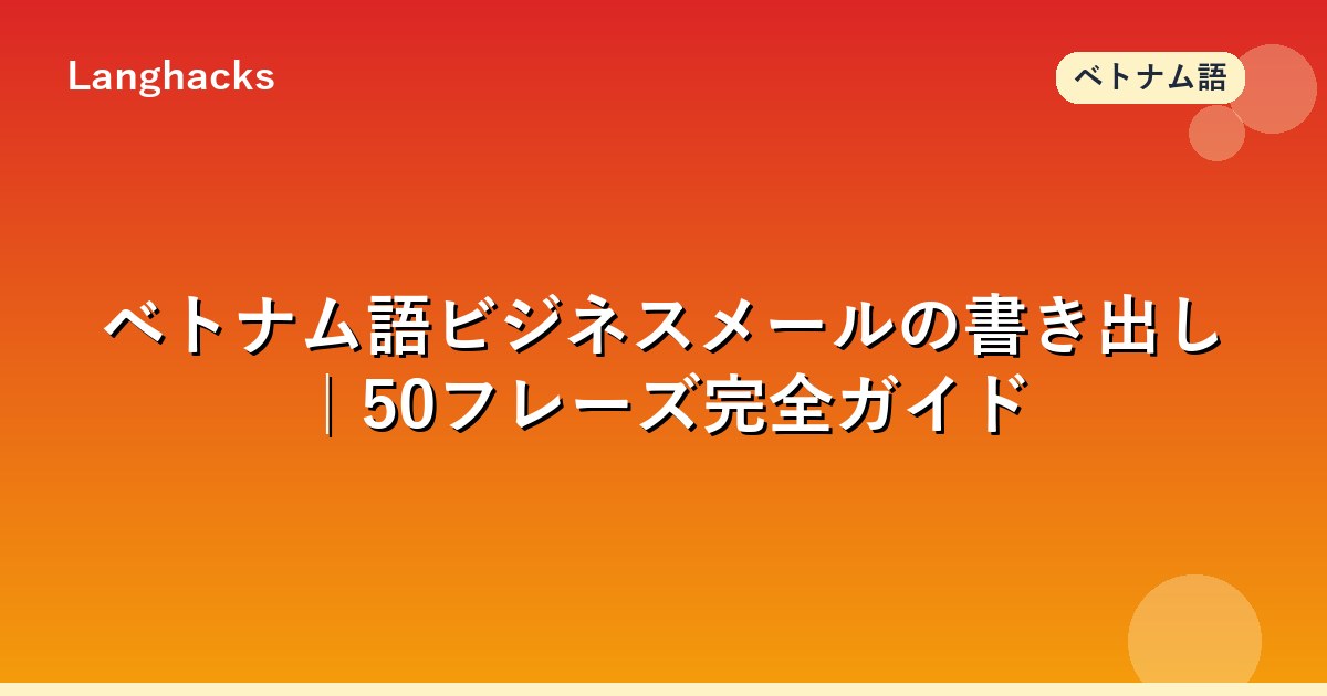 総論としてベトナム語のビジネスメール・手紙の書き方完全ガイド、敬語論としてビジネス敬語・フォーマル表現の使い分けを合わせると、書き出しから結びまで一貫した格式設計が可能です。