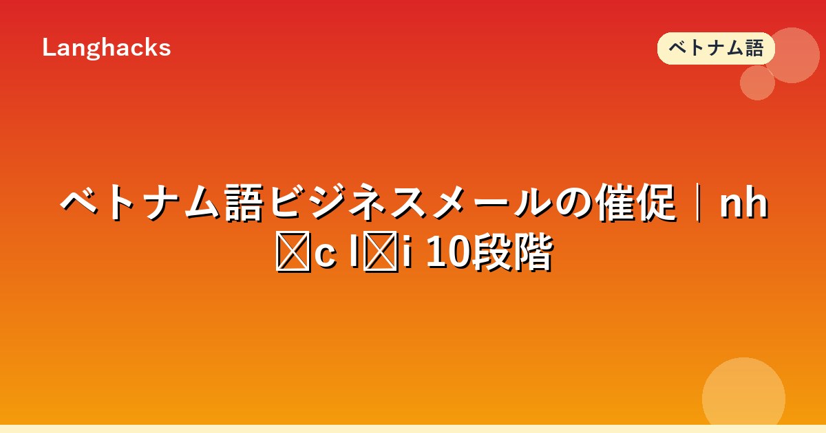 ベトナム語ビジネスメールの催促は、10段階のトーン強度で使い分けます。3日経過の柔らかい再確認から、2週間超のエスカレーションまで明確に区別できます。