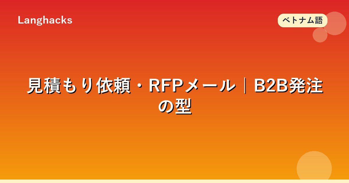 ベトナム語の見積もり依頼・RFPメール(Email yêu cầu báo giá・RFP)は、複数社相見積もりが標準慣行です。