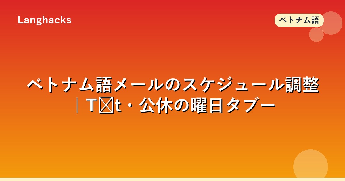 ベトナム語ビジネスメールのスケジュール調整は、Tết(旧正月)と公休の曜日タブーを把握することが必須です。候補提示・日程決定・リスケ・キャンセル・会議室共有の5シーンを実例で解説します。