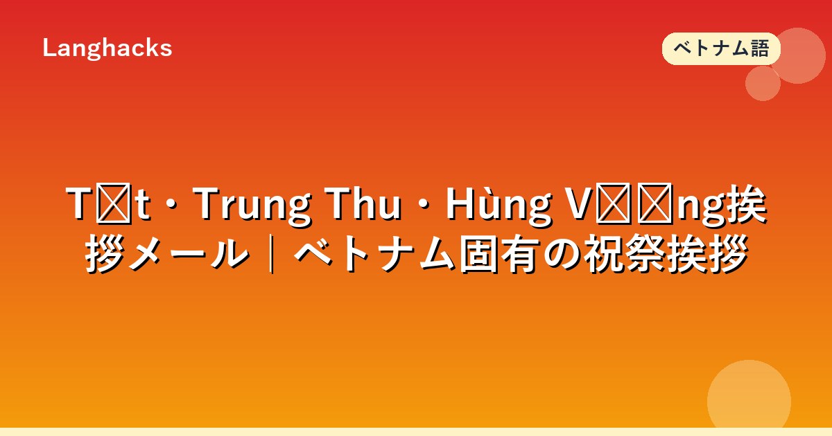 ベトナム語のTết・Trung Thu・Hùng Vương挨拶メール(Email lễ Tết Việt Nam)は、ベトナム固有の祝祭挨拶です。