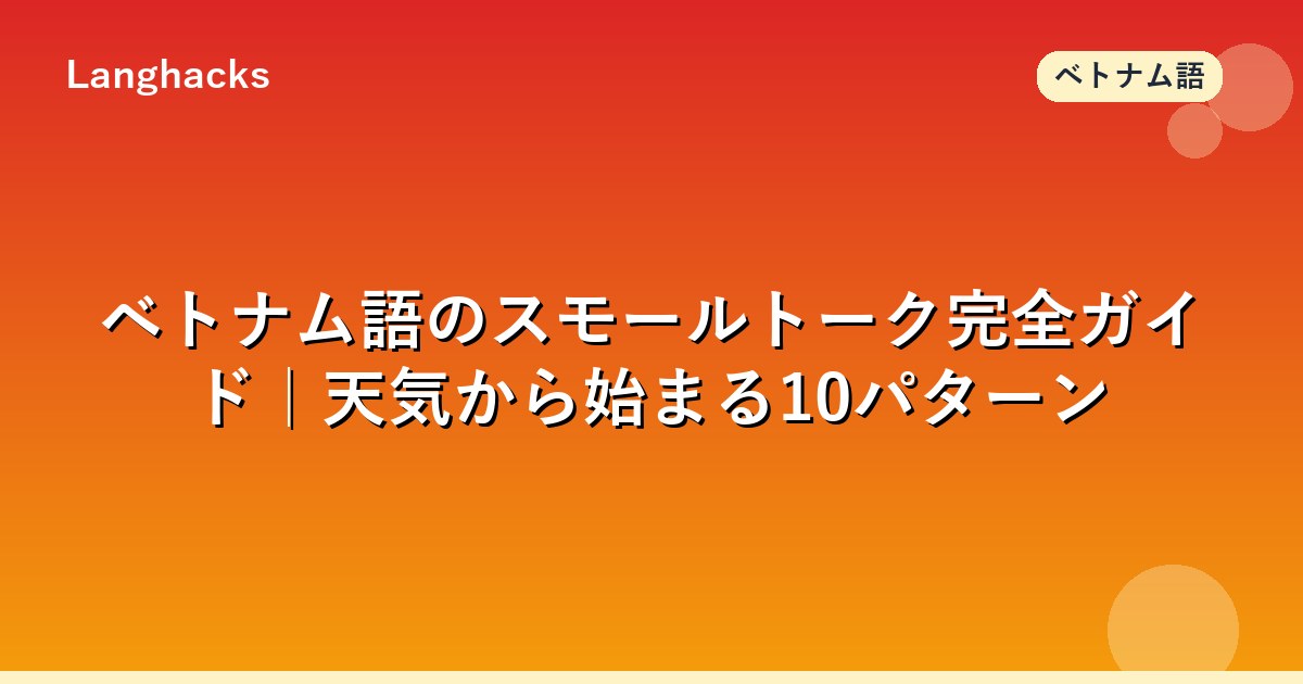 本記事はベトナム語のスモールトーク完全ガイドです。